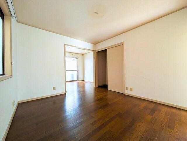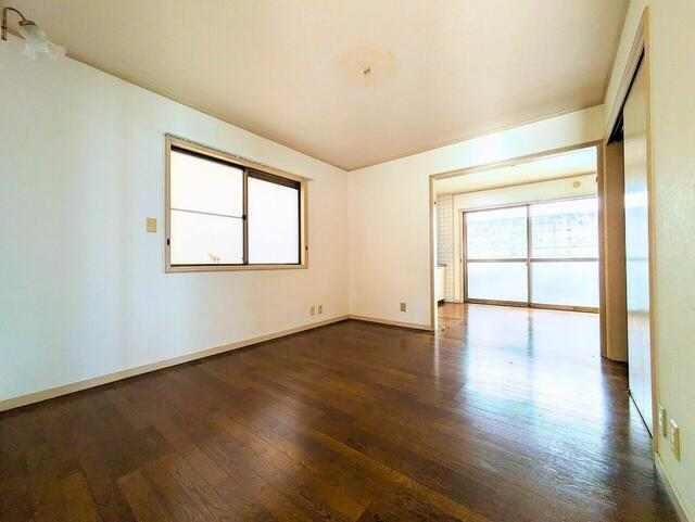白い壁とフローリングのダイニングスペースが広がるリビングルー