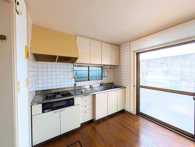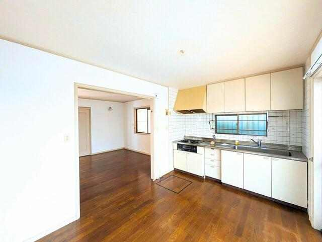 キッチン横に大きな掃き出し窓があり、日差しが差し込む明るい空