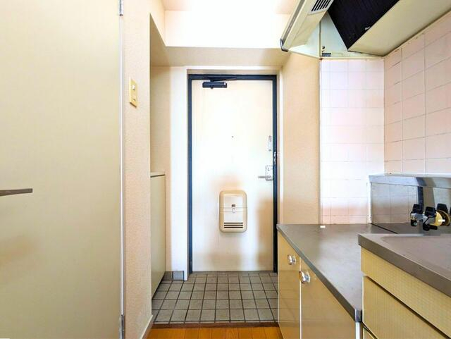 タイル貼りの玄関土間。靴の着脱がしやすく、帰宅後の動線もシン