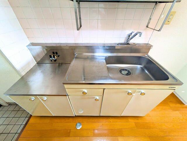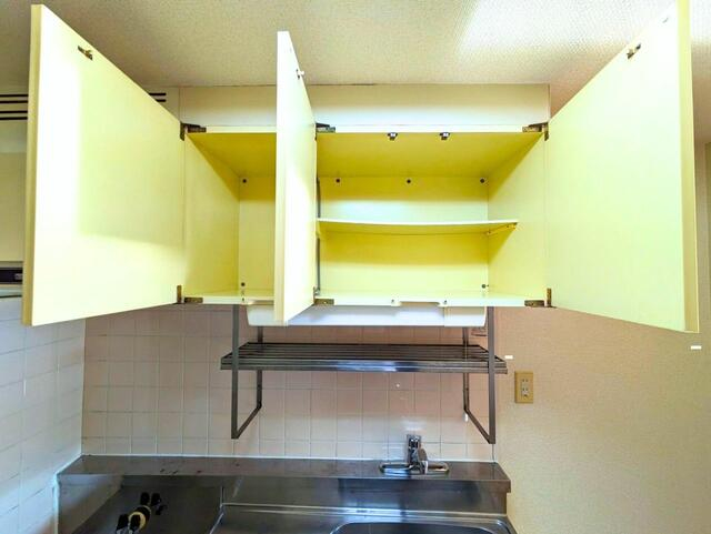キッチンは吊戸棚で作業スペースと収納を確保。