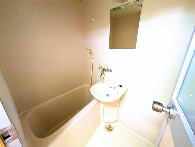 浴槽・洗面・シャワーがまとまったユニットバス。換気しやすいレ