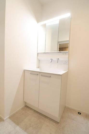 【施工例】洗面所には便利な棚付き♪