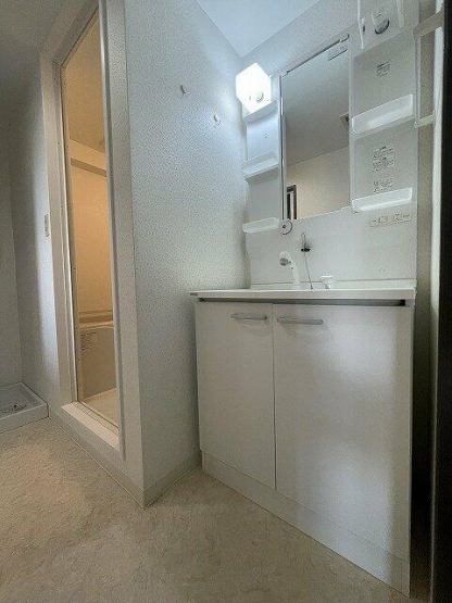 清潔感溢れるスタイリッシュなデザインの洗面化粧台です
