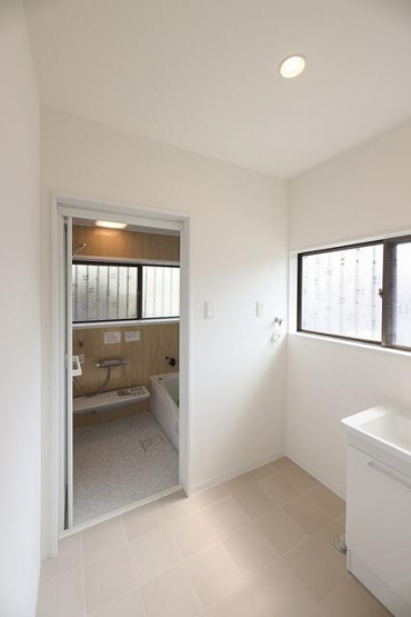 白を基調とした、明るく清潔感ある洗面所