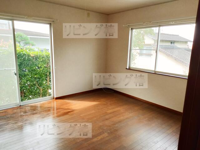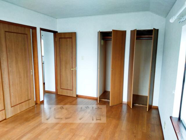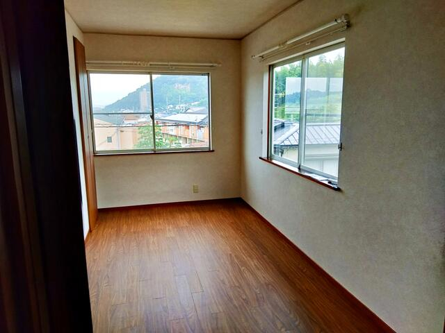 2階6帖洋室。西側と北側にも窓があります。物入もあり。北側は