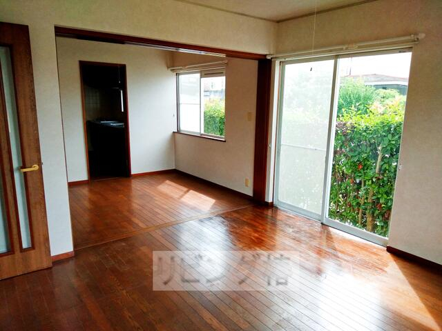 西南の8帖リビングです。隣の6帖ダイニングと引き戸で一間にし