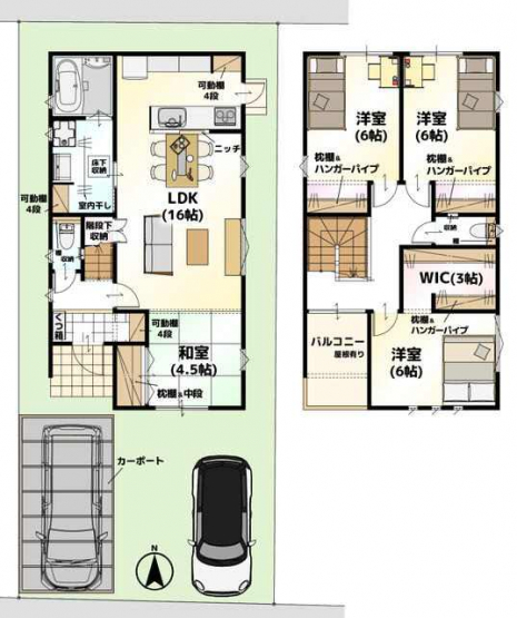 【内観予想図】16帖+和室の広々としたLDK。住みやすさを追