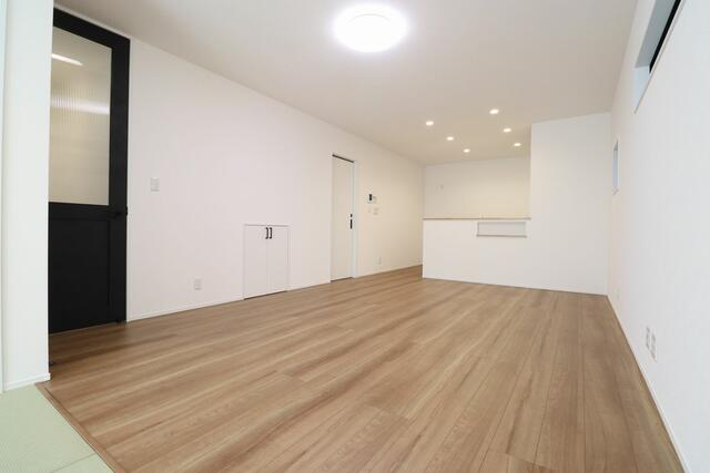 【施工例】和室を合わせると約20帖のLDK。キッチンからお部
