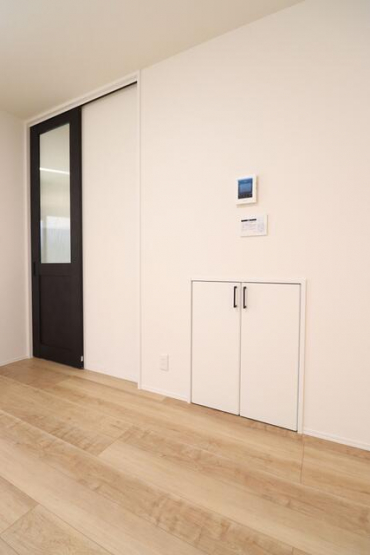 【施工例】リビングには階段下を利用した収納を設置。日用品のス