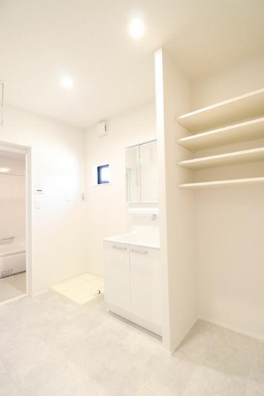 【施工例】注文住宅でも人気の3面鏡を採用!ミラー裏に収納でき