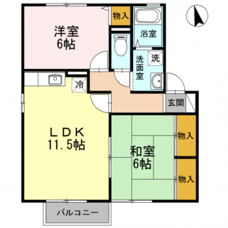 2LDK 洋室 6.00畳 和室 6.00畳 LDK 11.50畳 |