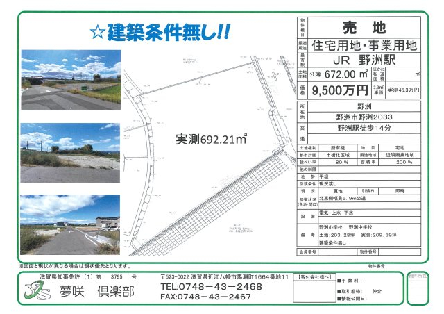 売地をお探しの方に、こちらの土地はイチオシです☆東海道本線野洲近くで商業施設をよくご利用されるなら、0748-43-2468、またはyuusa.club@outlook.jpまでお気軽にお問い合わせください(^_^)