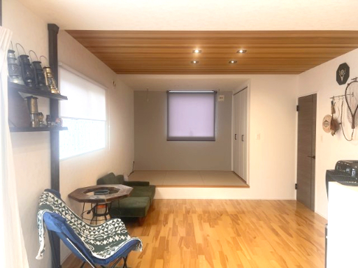 リビングの一部は天然木のレッドシダー貼り。小上がりの畳コーナーには大容量の収納付き。