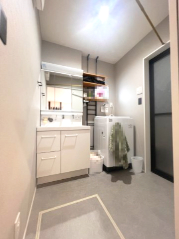 独立洗面台と洗濯機スペース。