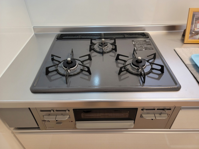3口ガスコンロ・グリル付きです。