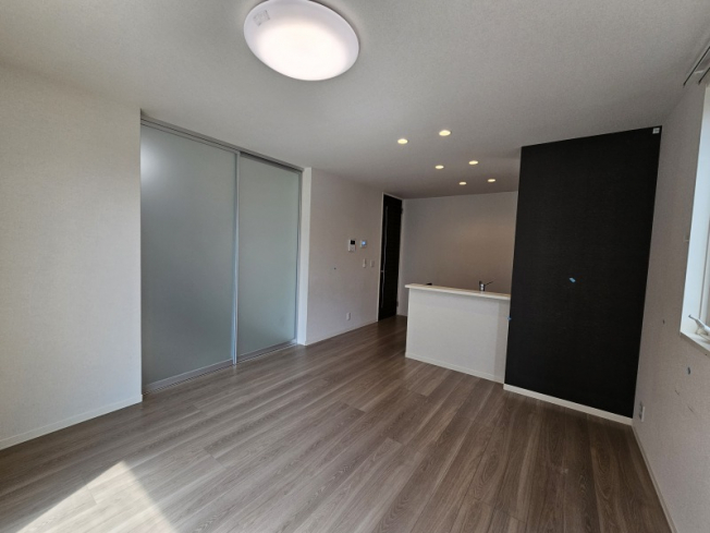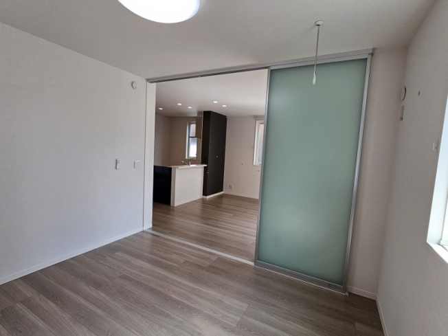 明るいLDKです。横の洋室とは半透明のスライディングドアで仕切られていておしゃれな感じです。