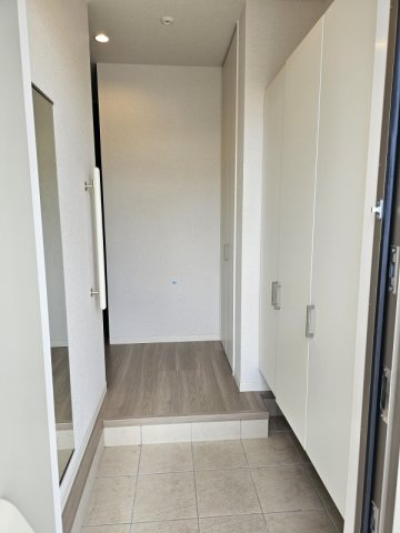 全身ミラーや手すりも付いた広めの玄関です