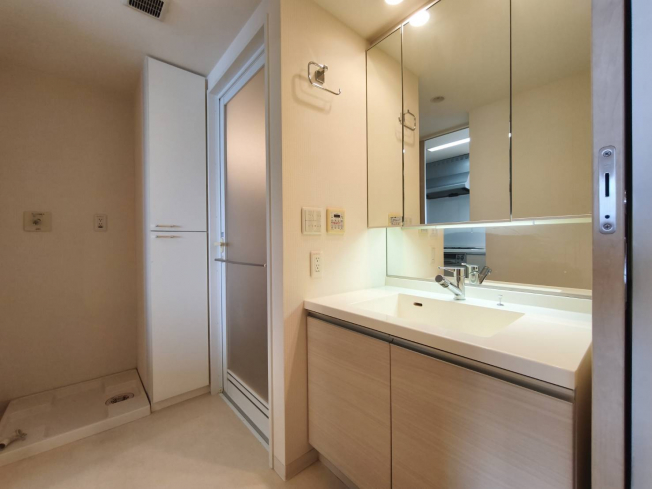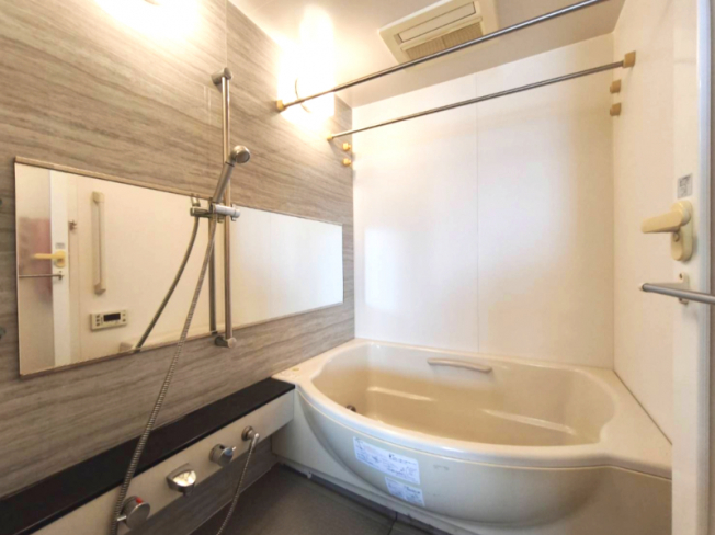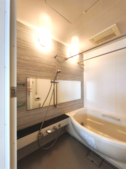浴室別角度、大きな鏡が印象的です