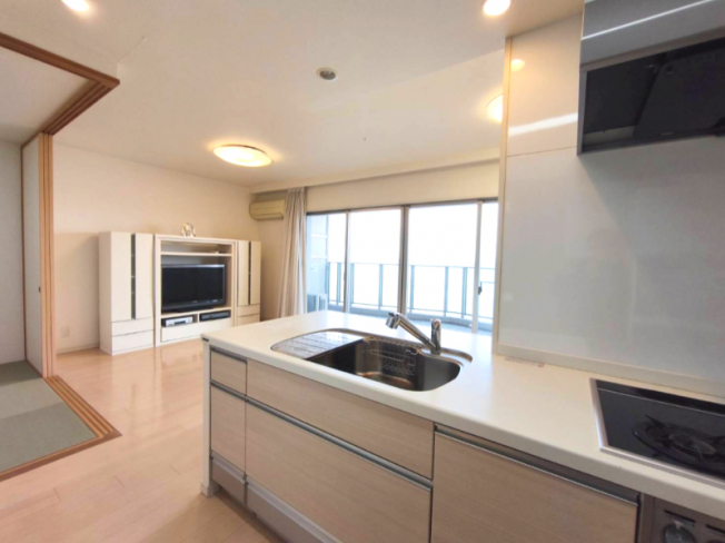 対面キッチンからリビングを見守りながら調理できます