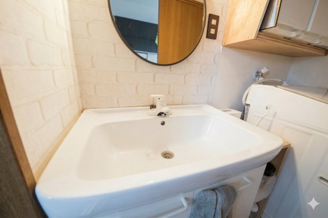 洗面台、AIで一部荷物を消しています