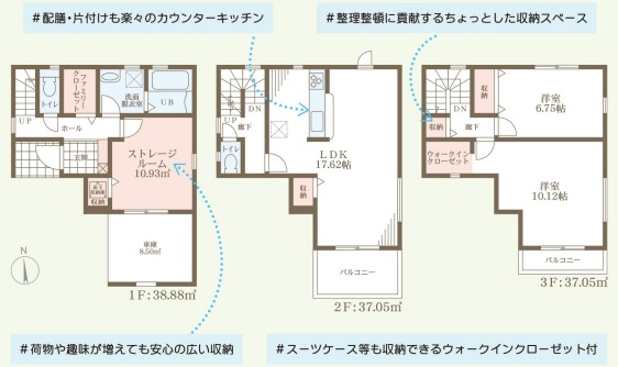 担当者のコメント:配膳・片付けも楽々のカウンターキッチン。整理整頓に役立つ収納スペースが随所に配置。スーツケースも収納できるウォークインクローゼット付き。