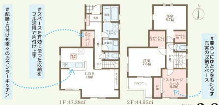 担当者のコメント:配膳・片付けが楽々なカウンターキッチン採用。スーツケースも収まる大容量ウォークインクロゼット付きで、ゆとりある充実の収納スペースが自慢。