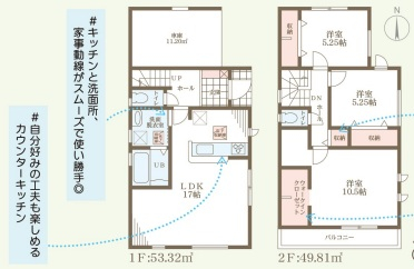 担当者のコメント:キッチンに立ちながら家事動線がスムーズなカウンターキッチンを採用。洋服好きや衣装持ちの方に嬉しいウォークインクローゼット付き。自分好みにアレンジできるオープンスペースも魅力の住まいです。