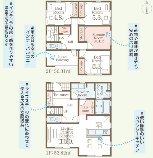 担当者のコメント:使い勝手のいいカウンターキッチンで料理も楽しくなります。雨の日も安心のインナーバルコニー付き。荷物や趣味が増えても安心の広い収納があります。ライフステージの変化にあわせて使える広めの玄関収納付きです。