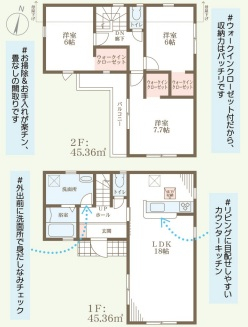 担当者のコメント:書斎棚&お手入れが楽なクロゼットがあります。外出前に全身鏡で身だしなみチェックができます。ウォークインクローゼット付きです。カウンターキッチンで会話もはずみます。収納力はバツグンのパントリー付きです。