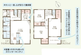担当者のコメント:ホッと一息、心が安らぐ畳部屋があり、配膳・片付けも楽々のカウンターキッチンがあります。季節物の入れ替えが楽々のウォークインクローゼット付で、突然の雨でも助かるインナーバルコニーがあります。みんなの会話がはずむカウンターキッチン付きです。