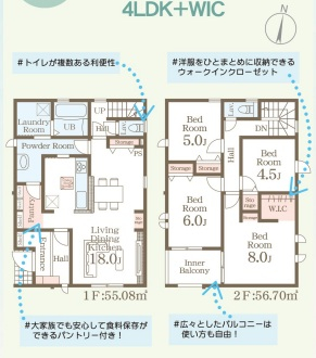 担当者のコメント:トイレが複数ある利便性があります。洋服をひとまとめに収納できるウォークインクローゼットがあります。大家族でも安心して食料保存ができるパントリー付きです。広々としたバルコニーは使い方も自由です。