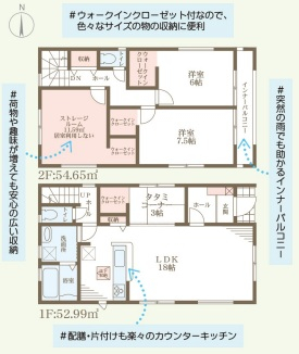 担当者のコメント:ウォークインクローゼット付なので、色々なサイズの物の収納に便利です。荷物や趣味の物があっても安心の広い納戸があります。配膳・片付けも楽々のカウンターキッチンです。