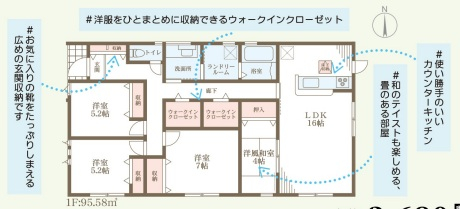 担当者のコメント:洋服をひとまとめに収納できるウォークインクローゼット。お気に入りの靴をたっぷりしまえる広めの玄関収納。使い勝手のいいカウンターキッチン。畳のある部屋でアイランドスタイルも楽しめる。配膳・片付けも楽々のカウンターキッチン。くれる畳と温かみを感じさせて和のある部屋。