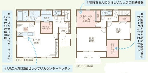 担当者のコメント:物持ちさんにうれしいたっぷり収納確保されています。シーズンオフのレジャーグッズもしっかり収納可能です。リビングに目配せしやすいカウンターキッチンがあり、洋服をひとまとめに収納できるウォークインクローゼット付きです。
