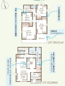 担当者のコメント:納戸は書斎や作業スペースに使いやすい設計です。ワイドバルコニーで洗濯物もたくさん干せます。