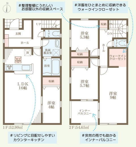 担当者のコメント:整理整頓にうれしいお部屋以外の収納スペースがあります。洋服をひとまとめに収納できるウォークインクローゼットがあります。リビングに目配せしやすいカウンターキッチンです。突然の雨でも助かるインナーバルコニーです。