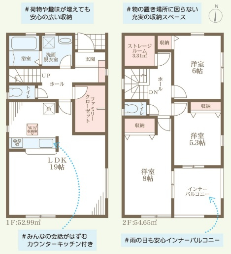 担当者のコメント:荷物や趣味が増えても安心の広い収納があります。物の置き場所に困らない充実の収納スペースです。みんなの会話がはずむカウンターキッチン付きです。雨の日も安心インナーバルコニーです。