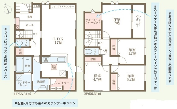 担当者のコメント:広々敷地の限定1棟現場です。うれしいブックの収納スペースがあります。スーツケース等も収納できるウォークインクローゼット付です。お掃除とお手入れが楽チンで畳なしの間取りです。配膳・片付けも楽々のカウンターキッチンです。