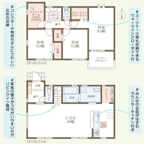 担当者のコメント:コレクターや物持ちさんにうれしい広めの収納です。家族の様子がうかがいやすいのがリビングイン階段です。スーツケース等も収納できるウォークインクローゼット付きです。みんなの会話がはずむカウンターキッチン付きです。