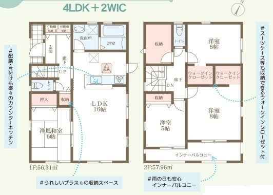担当者のコメント:配膳片付けも楽々カウンターキッチンです。スーツケース等も収納できるウォークインクローゼット付です。うれしいプラスαの収納スペースがあります。雨の日も安心インナーバルコニー付です。