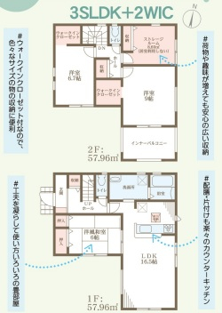 担当者のコメント:ウォークインクローゼットが2か所あり、色々なサイズの洋服をそのまま収納できます。土間収納もあり、靴や傘以外のものも置けるので玄関がスッキリ片付きます。