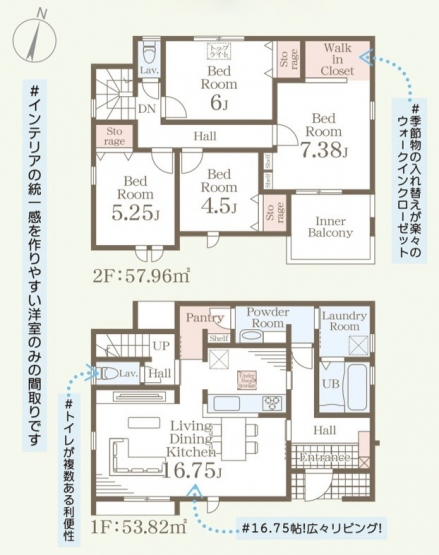 担当者のコメント:熊本初のKuRuRi仕様です。16.75帖広々リビング。インテリアの統一感を作りやすい洋室のみの間取り。トイレが2ヶ所あるので家族数が多くても安心。