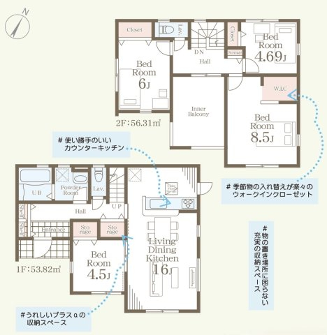 担当者のコメント:使い勝手のいいカウンターキッチンと季節物の入れ替えが楽々のウォークインクローゼットが特徴です。うれしいプラスαの収納スペースと物の置き場所に困らない充実の収納スペースを備えています。