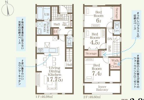 担当者のコメント:物の置き場所に困らない充実の収納スペースがあります。使い勝手の良いカウンターキッチンを採用しています。うれしいプラスαの収納スペースがあります。季節物の入れ替えが楽々のウォークインクローゼットを備えています。