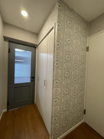 玄関ホールにもアクセントクロスで華やかに♪